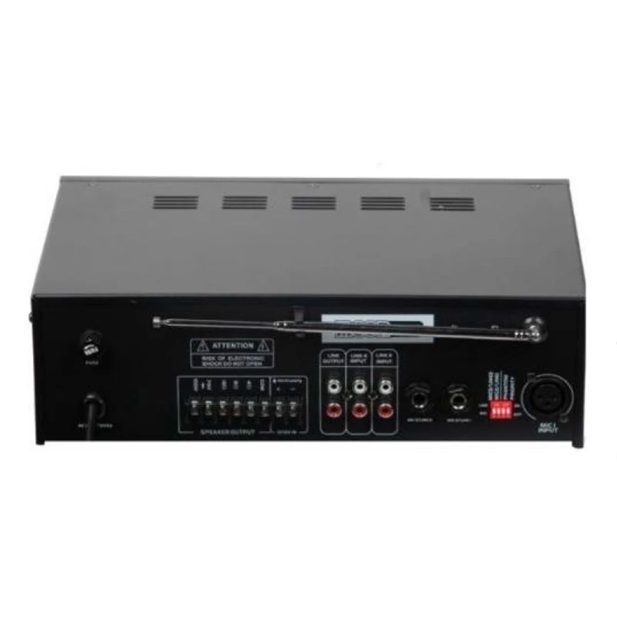 • 3 entradas de microfono con selector line/mic. ( una con conexion xlr y dos con plug 6.3 con control de volumen. *Phantom *Mic. priority)