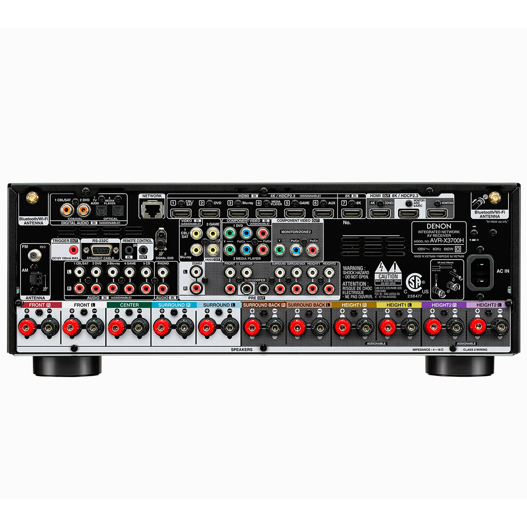 Con amplificadores discretos de alta corriente en todos los canales, el receptor de 9.2 canales AVR-X3700H ofrece un rendimiento de alta potencia de 105 W por canal para garantizar una experiencia de entretenimiento potente y precisa en todo momento.