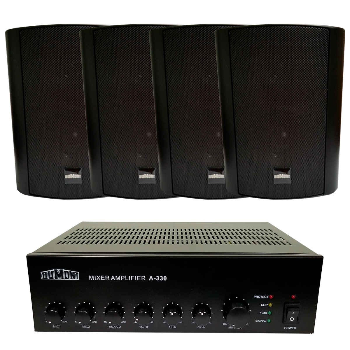 Los amplificadores para uso comercial Dumont son la solución ideal para ser utilizados en instalaciones de música funcional y sistemas de audio buscapersonas. Tanto los modelos A330, A570 como A1306 vienen con salidas de 4 a 16 Ohms y salidas de alta impedancia con transformadores de línea de 70/100 volts.