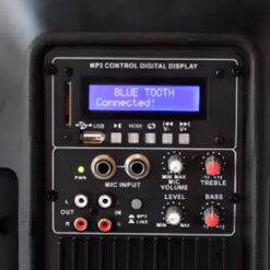 Bafle potenciado de 10″ de dos vías con radio, mp3, USB, SD, bluetooth y control remoto. Woofer de 10″. 8 Ohms, bobina de 1,5″ y driver de titanio de 25mm. Cuenta con entradas de microfono (XLR/ Jack 6,5), salida (JACK 6,5) y entradaysalida XLR.