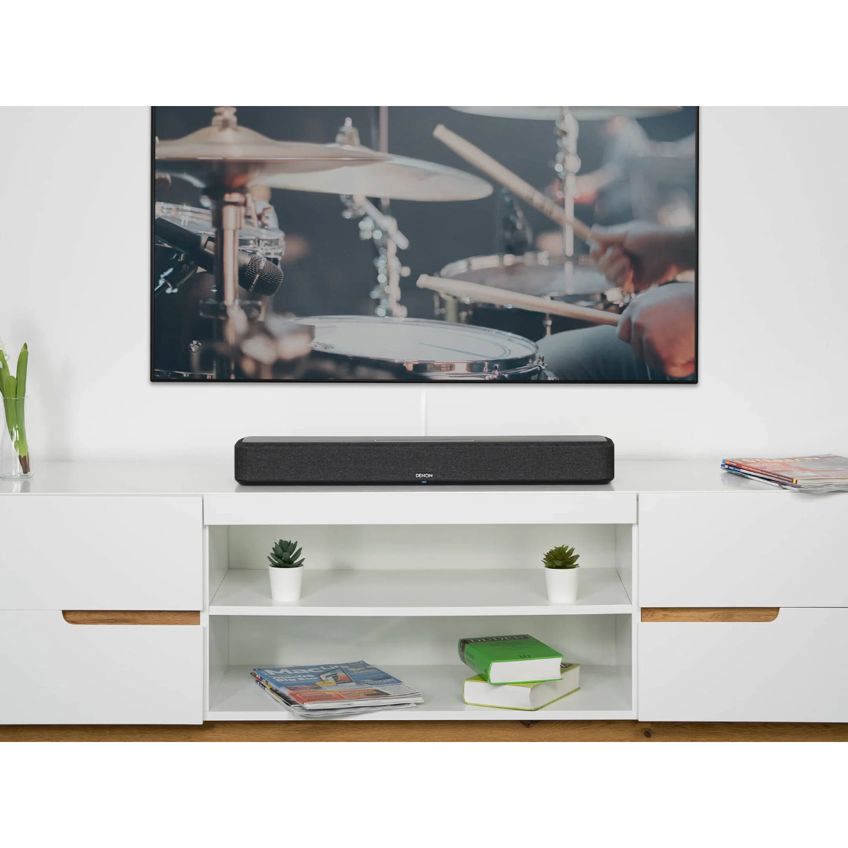 Barra de sonido inteligente Dolby Atmos DTS:X con HEOS WiFi y Bluetooth Denon Home Soundbar 550. La Denon Home Soundbar 550 es una barra de sonido inteligente diseñada para mejorar drásticamente el audio de tu televisor y tu música, ofreciendo una experiencia envolvente con audio 3D gracias a Dolby Atmos y DTS:X. Su formato compacto de 26 pulgadas permite instalarla fácilmente sin sacrificar potencia ni calidad sonora.