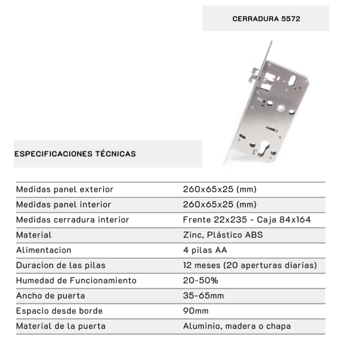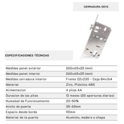 • Duración de las pilas: 6 meses (20 aperturas diarias)