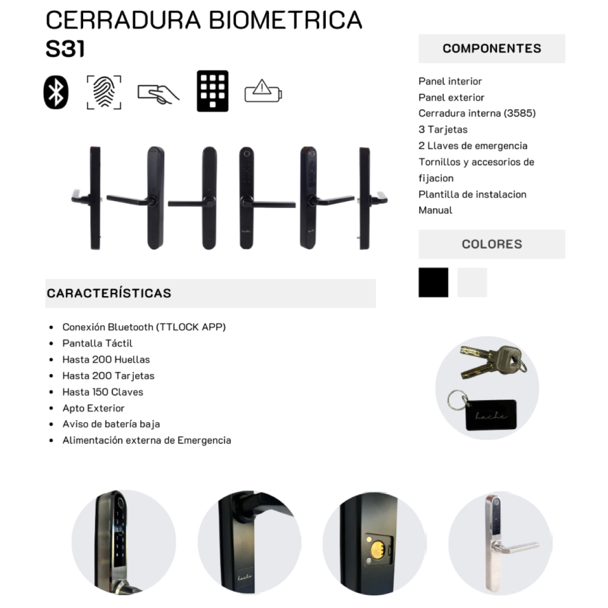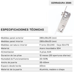 • Duración de las pilas: 12 meses (20 aperturas diarias)
