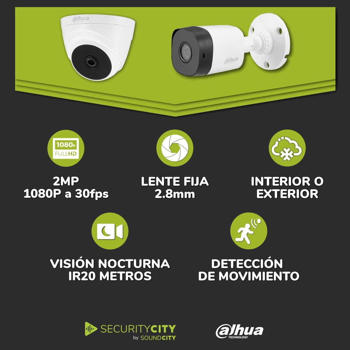 Cámaras Bullet Dahua B1A21P2 de 2MP y lente de 2.8mm