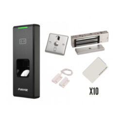 Kit de control de accesos y presentismo apto exterior, basado en el poderoso C2Slim con Bluetooth, se incluye software Anviz CrossChex. Permite apertura por tarjeta, huela y app cellular.