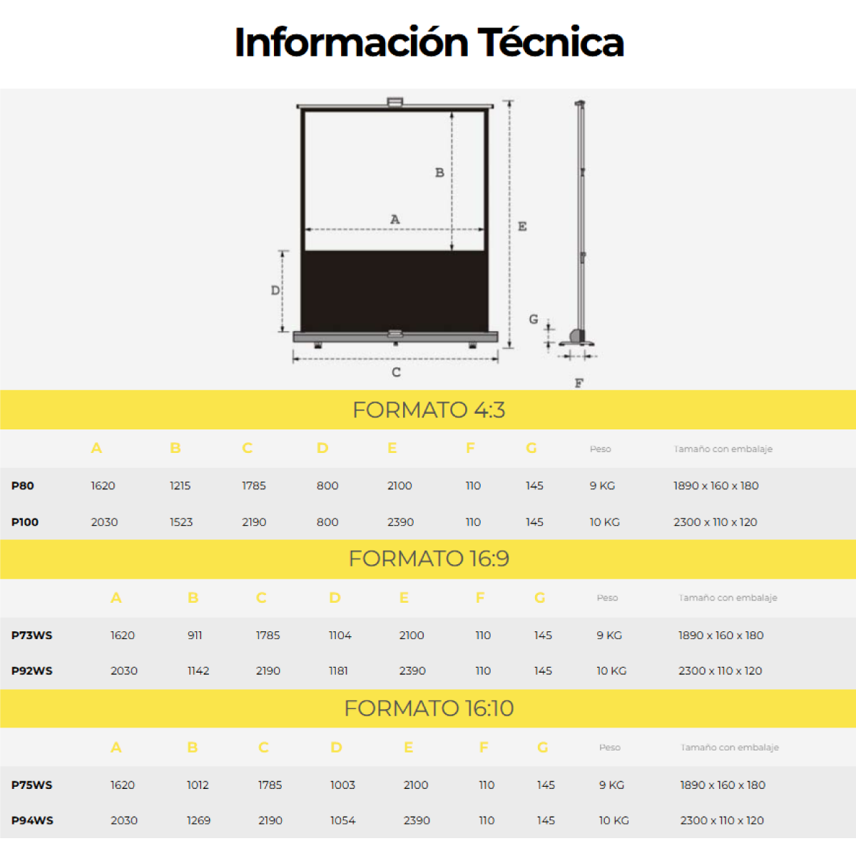 MECANISMO: Las pantallas han sido fabricadas en aluminio por lo que son tan livianas como durables. El sistema de patas en su parte trasera permite instalar la pantalla a escasos centímetros de la pared, aprovechando así toda la superficie de la sala.