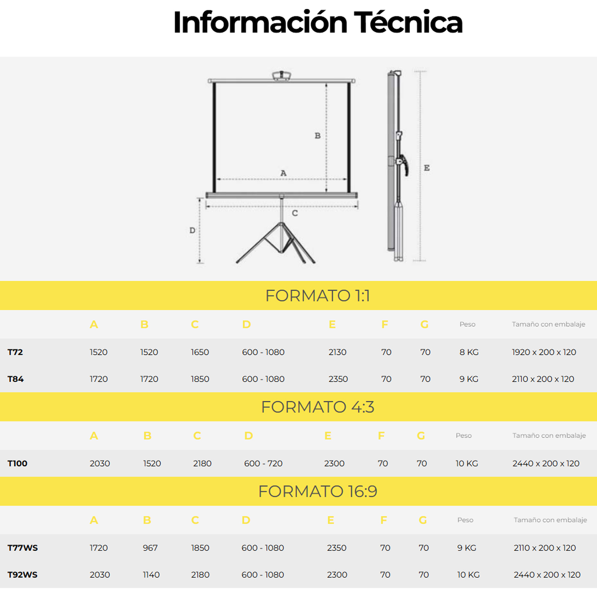 Pantalla para proyectar portatil con tripode 100″ Vidium T100. La linea tripode es una línea de pantallas portátiles económica, práctica y fácil de usar que a pesar de su sencillez no resigna calidad. Ideal para incorporar en empresas, colegios, universidades y salones de usos múltiples, puede proyectar video, PC, transparencias y otros formatos, adaptándose así a las diferentes necesidades del usuario. Su trípode incorporado facilita su traslado con rapidez y efectividad para así ser utilizada en diferentes espacios dentro de un mismo recinto.