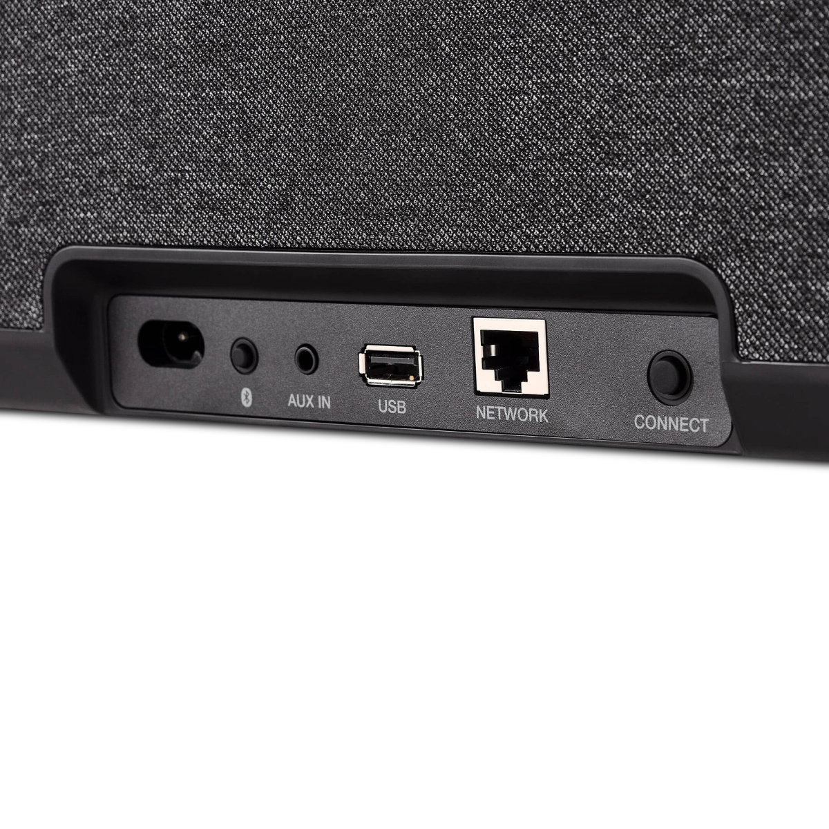 Cuenta con micrófonos integrados para control por voz mediante Alexa y compatibilidad con Siri a través de AirPlay 2. Su diseño moderno y elegante lo convierte en una solución ideal para quienes buscan un parlante inteligente con sonido estéreo real y alta fidelidad.