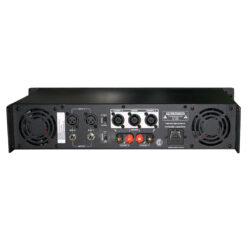 Potencia de dos canales puenteable. Sistema de ventilación por doble fan y disipador de calor. De 220v. Indicador de nivel de entrada 2 x 5 led. Indicador de encendido, señal, sobrecarga y protección. Moon PM60.