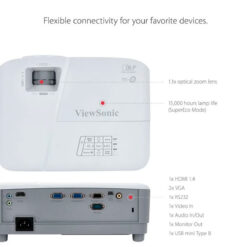 El proyector de precio-rendimiento ViewSonic PA503W cuenta con 3800 lúmenes, resolución nativa WXGA 1280×800 y un diseño intuitivo y fácil de usar. La exclusiva tecnología SuperColor™ ofrece una gama de colores más amplia para una proyección de imágenes realistas. El PA503W también cuenta con una amplia conectividad que incluye HDMI, 2 entradas VGA, vídeo compuesto, 1 salida VGA y entrada/salida de audio. Una función SuperEco ™ de ahorro de energía reduce el consumo de energía hasta en un 70% y extiende la vida útil de la lámpara hasta 15,000 horas*. Con funciones audiovisuales avanzadas, opciones de conectividad flexibles y un precio asequible, el PA503W es ideal para su uso en entornos educativos y de pequeñas empresas