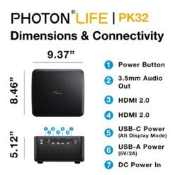 Proyector 4K UHD HDR 150″ 1100 lúmenes USB-C Gaming Home PK32. El Photon Life PK32 es un proyector 4K UHD diseñado para entretenimiento en el hogar y gaming, que combina alta calidad de imagen con funciones inteligentes para una experiencia inmersiva. Gracias a su tecnología 4LED, ofrece imágenes más brillantes, nítidas y con colores realistas, alcanzando hasta 150 pulgadas para transformar cualquier ambiente en una verdadera sala de cine. Con 1100 lúmenes de brillo y compatibilidad con HDR y HLG, el proyector garantiza excelente visibilidad y contraste incluso en entornos con poca luz. Su cobertura del 95 por ciento del espacio de color DCI-P3 asegura una reproducción precisa y vibrante, ideal tanto para películas como para videojuegos.
