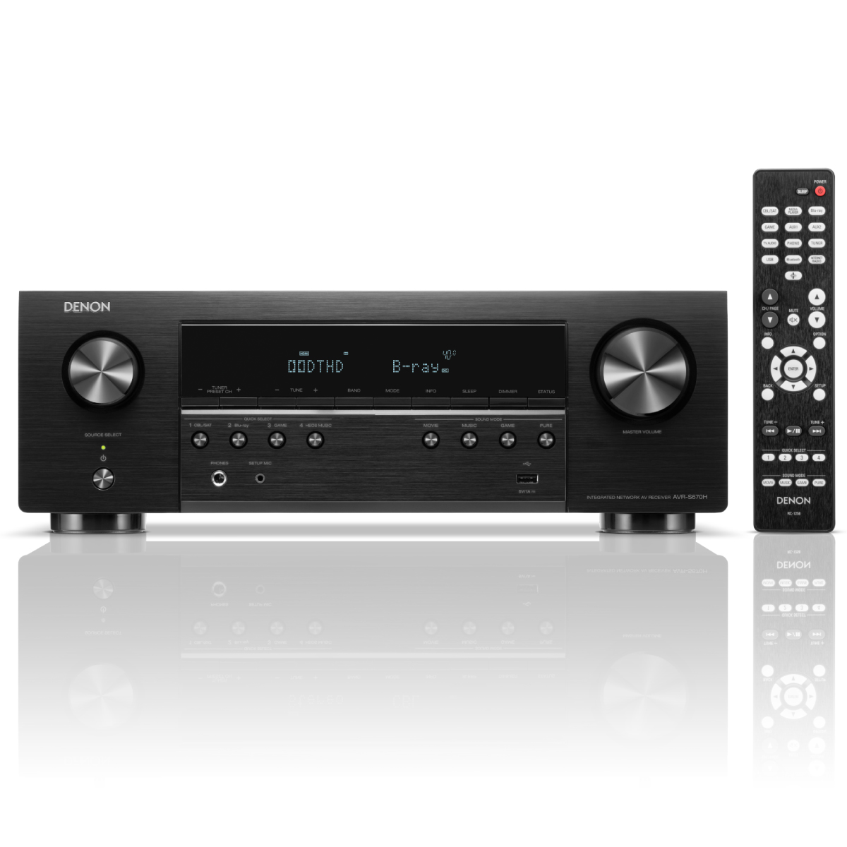 Sintoamplificador wifi bluetooth 5.2 Ch. 8K con HEOS y Dolby TrueHD Denon AVR-S670H. El AVR-S670H es un sintoamplificador de 5.2 canales con 75W por canal y una potencia máxima de hasta 150W. Ofrece un sonido envolvente de alta fidelidad, compatibilidad con video 8K, conectividad inalámbrica mediante HEOS® Built-in, Wi-Fi, Bluetooth y calibración automática de sala Audyssey MultEQ. Ideal para cines en casa de tamaño medio, permite una experiencia audiovisual inmersiva y versátil, compatible con los últimos estándares de audio y video.