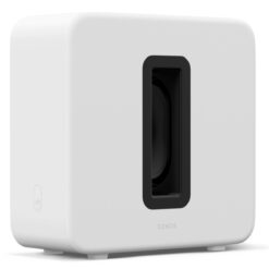 Parlante subwoofer Sonos Sub Gen 4 Blanco. Sub 4 libera toda la potencia del sonido Sonos para sumergirte más profundo en cada escena y cada canción. Configurá Sub 4 en minutos: simplemente conectá el cable de alimentación y abrí la app Sonos. Se conecta a tu sistema por WiFi para que puedas colocarlo donde más te convenga, ya sea a la vista o escondido debajo de un sillón. Los woofers duales con cancelación de fuerza generan graves impactantes, eliminando prácticamente toda distorsión. El diseño emblemático de acabado mate combina elegancia con funcionalidad, haciendo que este subwoofer no solo se escuche bien, sino que también luzca increíble en tu hogar.